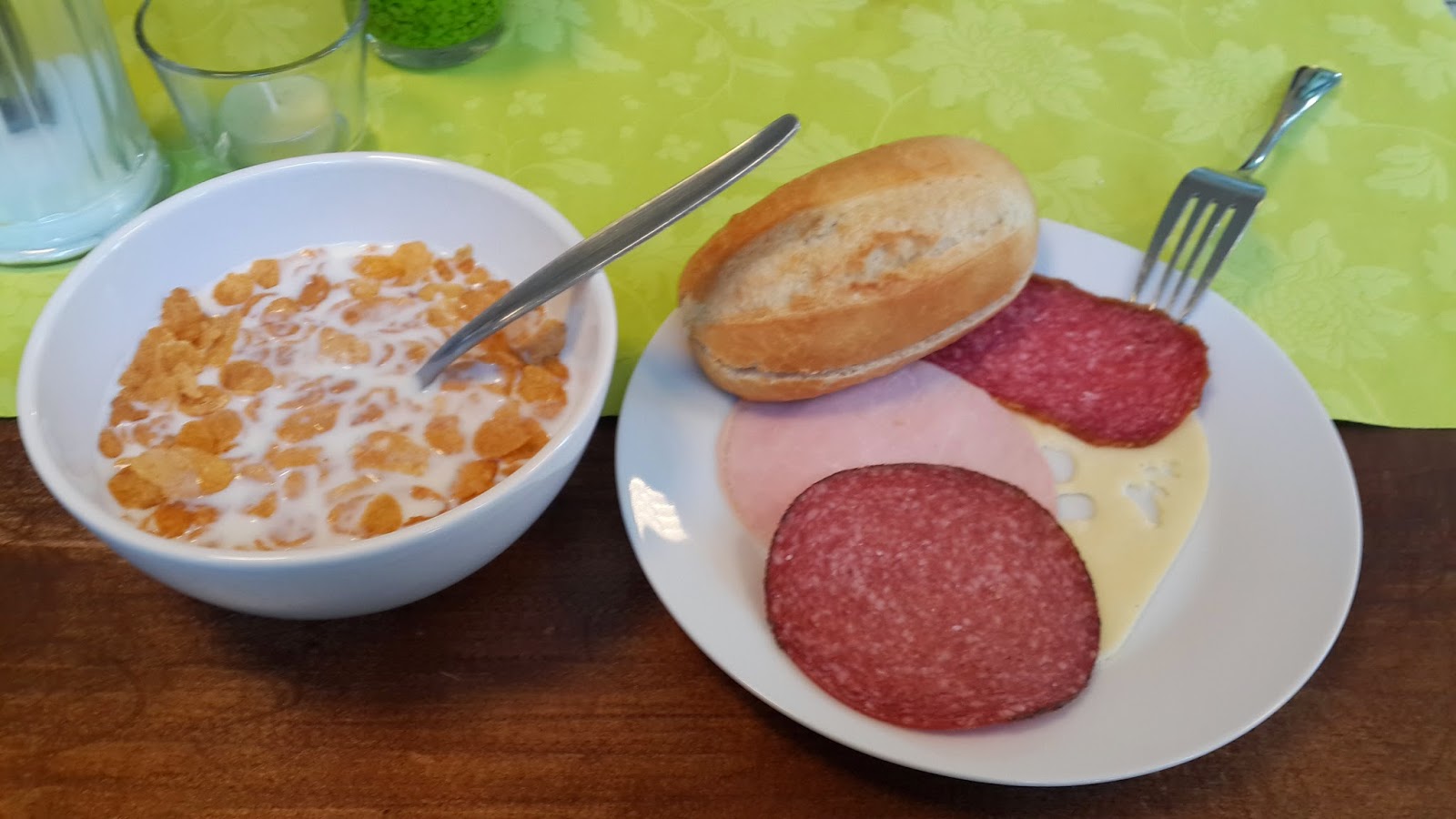 另外也有乳酪, 牛奶, 蘋果, 橙汁, 玉米片, 咖啡, 花茶包, 牛油和芝士醬, 重點是自助形式吃多少都沒所謂, 只要吃得完就OK. 偶爾吃一頓真的不錯, 不像英式早餐都是煎的炸的, 可是太多肉或芝士會很咸, 要不斷喝飲料. 未有機會嘗試其他餐廳的德式早餐, 但這次已令我留下好印象.